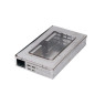 Feita em metal com tampa transparente para facilitar monitorização.
